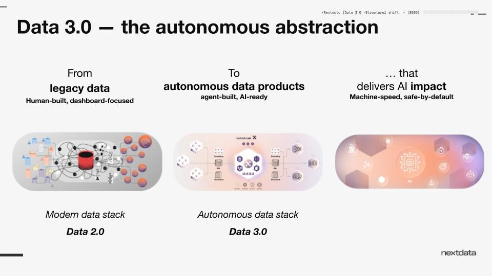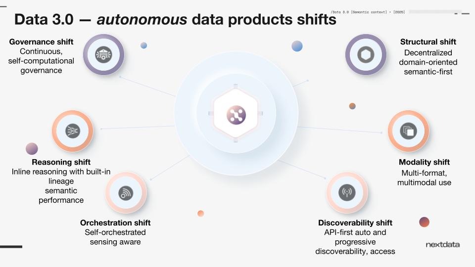 “That was the focus of our recent product update: the first foundational shift in Data 3.0, from storage-centric, schema-first data processing to domain-oriented, semantic-first data processing, and how Nextdata OS autonomous data products implement it”.